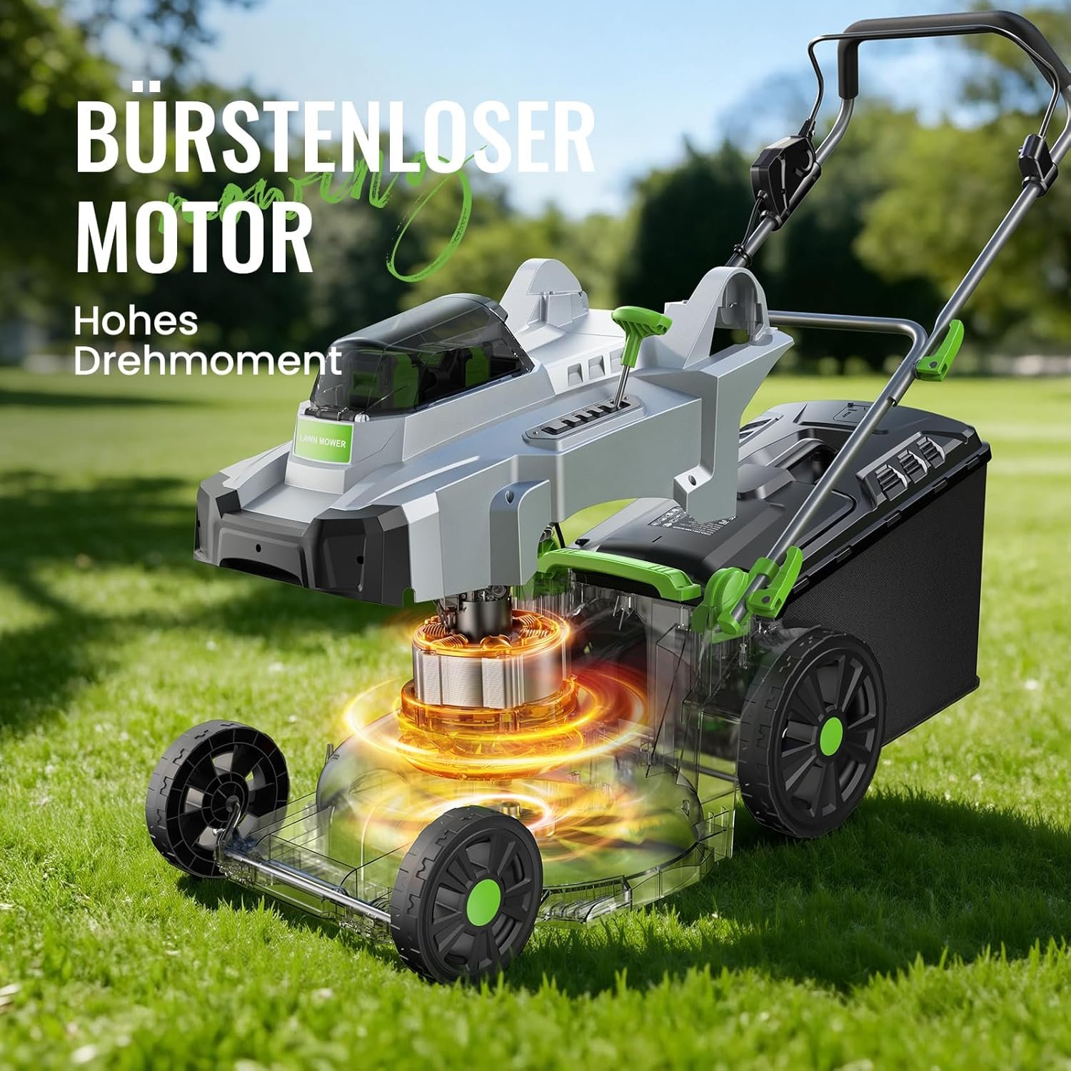 • Hocheffizienter Brushless-Motor: Der Verzicht auf Kohlebürsten bedeutet weniger Verschleiß und deutlich mehr Leistung. Der 1200W-Motor arbeitet nahezu wartungsfrei und liefert selbst bei dichtem Gras konstante, kraftvolle Schnittergebnisse bei maximaler Lebensdauer.