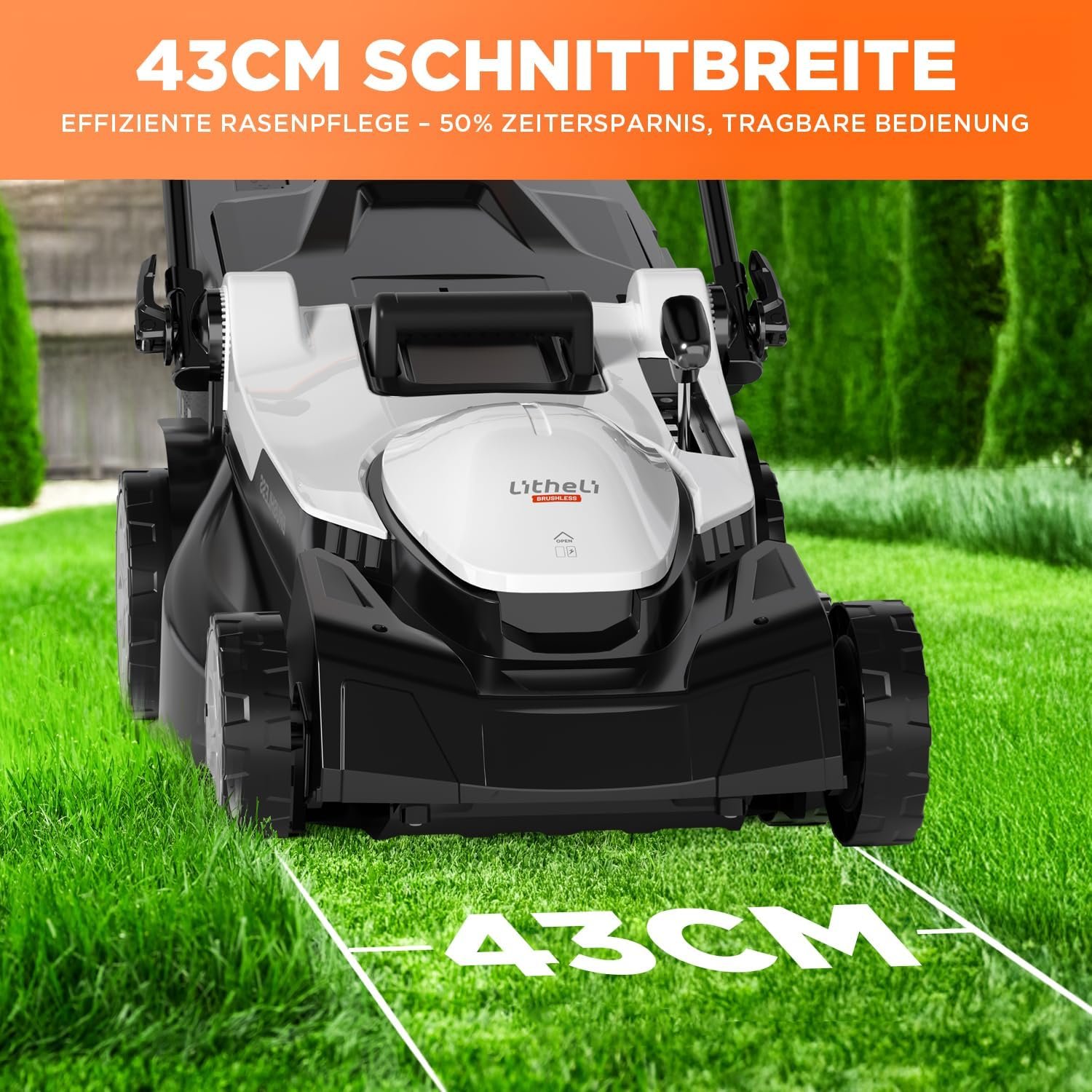 Litheli U20 Akku-Rasenmäher: 43cm Breite, Brushless-Motor, bis 500m², 40L Korb, inkl. 2x 4.0Ah Akkus & Ladegerät, 25-75mm